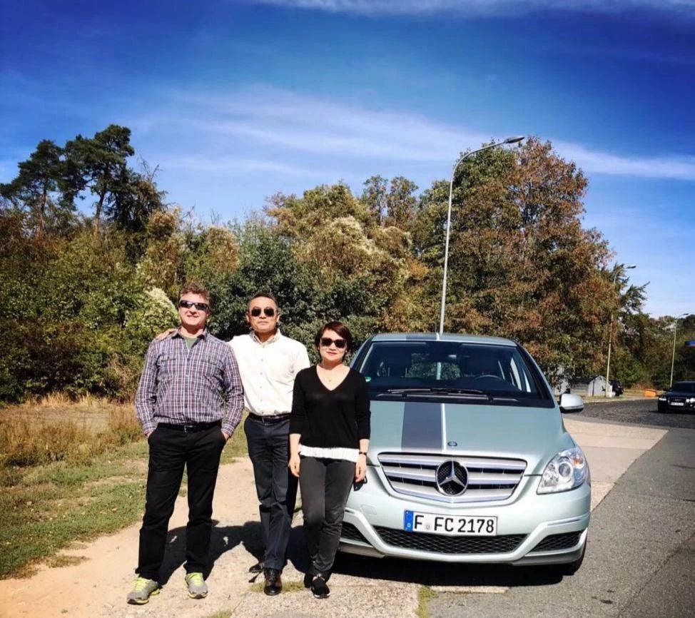 2018年9月17日凌晨6点,由国内飞往德国的航班准时到达法兰克福机场,德国合作伙伴驾着提前一个月预约租赁的奔驰B200 F-Cell燃料电池汽车,与我们一行相会,随即驶向斯图加特机场(Esslingen,Stuttgart Manfred Rommel Airport)的一座加氢站。鉴于德国合作伙伴是氢能圈子成员,此车租金每天仅需20欧,便宜得不敢想象,大家很是欢喜雀跃。一个半小时的绿色环保出行完全零排放、零污染、无震动且噪声低,将长途飞行的疲惫一扫而光。